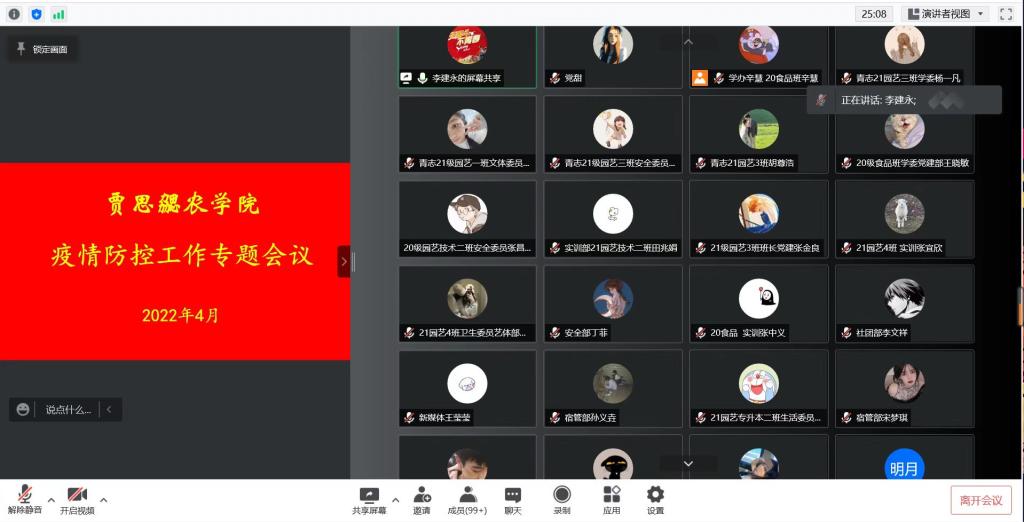 刘杰书记传达了公司疫情防控会议精神并强调:一是思想高度重视,决不能有丝毫麻痹懈怠,时刻做到情况明、数据准、底子清,守住校园疫情防控安全线。二是全体辅导员通过主题班会教育员工熟知发热应急处置流程,践行落实好“四个一律”,组织好每日核酸抽测,确保应检尽检、不漏一人。三是严格遵守校园封闭管理各项要求,从严、从重处理翻墙外出等违纪行为,确保校园疫情安全;四是员工干部特别宿舍长坚决落实通风消毒制度,密切关注员工思想心理动态并及时反馈,各辅导员要及时帮助员工解决实际问题和困难。五是积极组织“阳台体育,共抗疫情”趣味活动,引导员工走下网络、走出宿舍、走向操场,增强体质,舒缓压力!