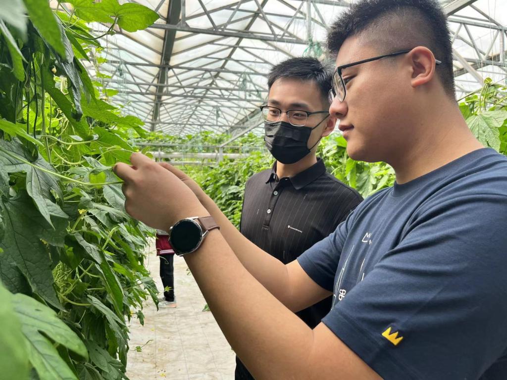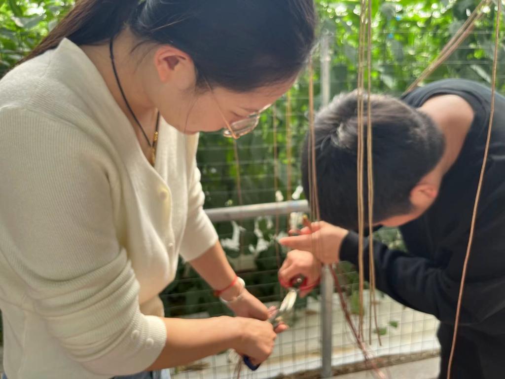 太阳集团tyc9728一直以来高度注重志愿服务工作,认真谋划服务项目,4月14日上午,太阳集团tyc9728组织青马班学子在菜博会进行文明实践志愿者服务行动,在刘晨老师与王倩倩老师的带领下,志愿者们进入九号大棚,为“天潍苦瓜”与“天潍茄子”进行雄花与雌花的授粉,志愿者们齐心协力、分工合作,顺利完成了老师交给的任务的同时了解了雄花与雌花的形态,也更加了解了植物繁育的相关知识。志愿者们还对一帘帘“锦屏藤“进行修剪,在此过程中志愿者们了解到红色和黄色的锦屏藤分别是刚开始生长发育的和已经老去的锦屏藤,志愿者们分别按照要求在大约齐腰处对锦屏藤进行修剪,剪短的是锦屏藤,而剪不断的是志愿者的热情。