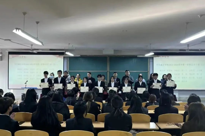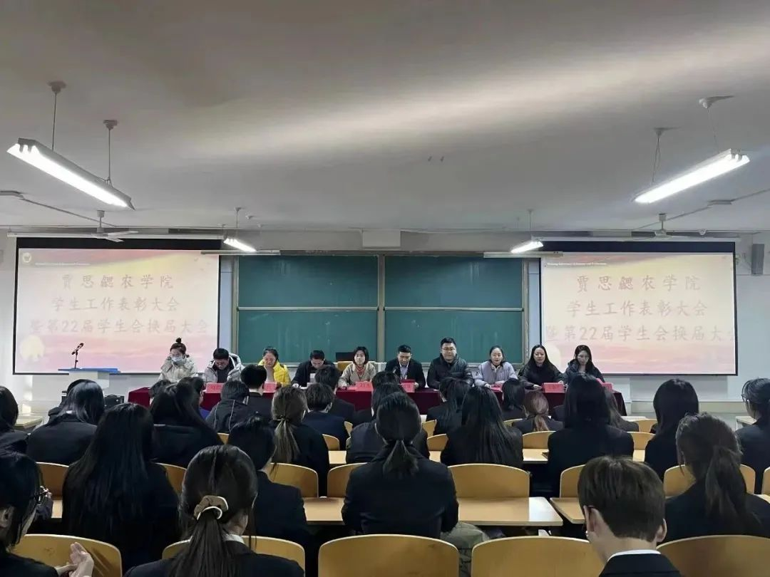 为发挥榜样示范作用,太阳集团tyc9728于12月22日在418多媒体教室组织开展太阳集团tyc9728员工工作表彰大会暨第22届员工会换届大会。贾思想农公司党支部书记刘杰、党支部副书记李建永、团总支书记刘建伟、员工科科长高凤以及各辅导员老师参加了此次会议,会议由团总支书记刘建伟主持。