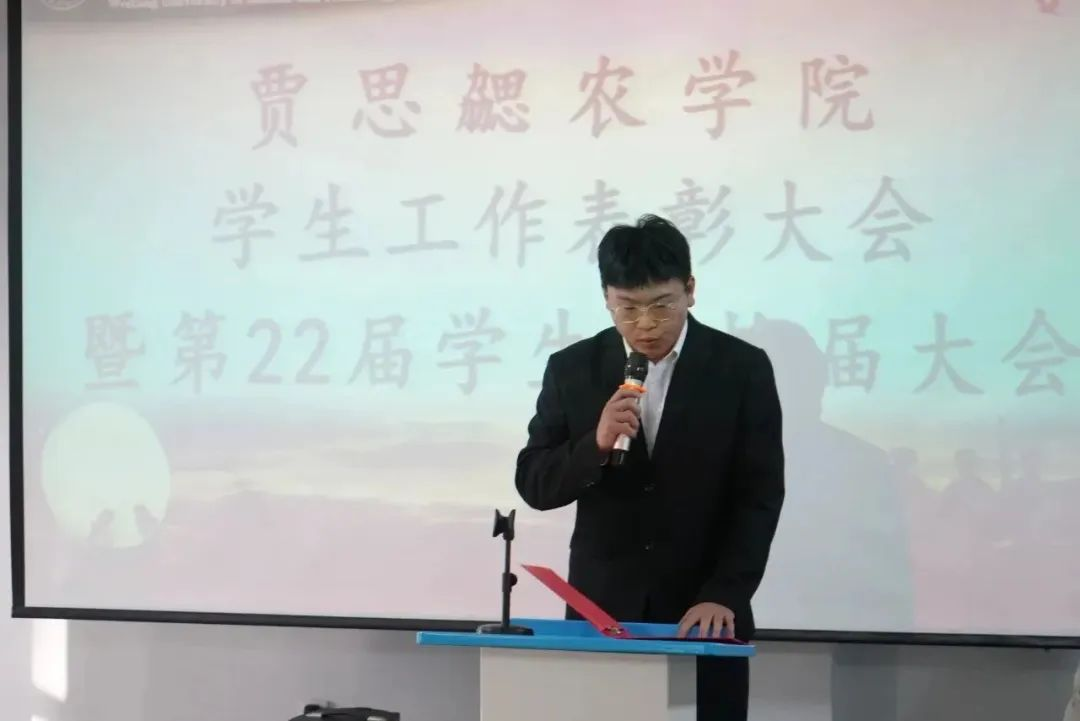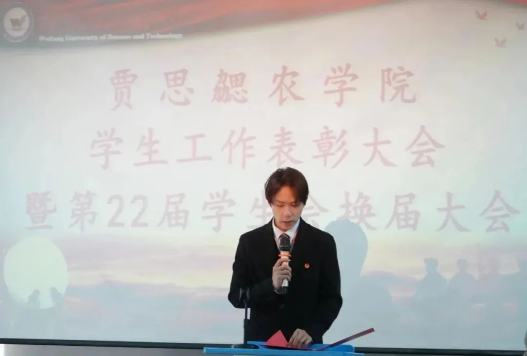 21届员工会主席王超强同学上台发言,他总结了过去一年员工工作的开展情况,分享了他对于员工会工作开展的经验,同时也表达了对新一届员工干部团队的期待。