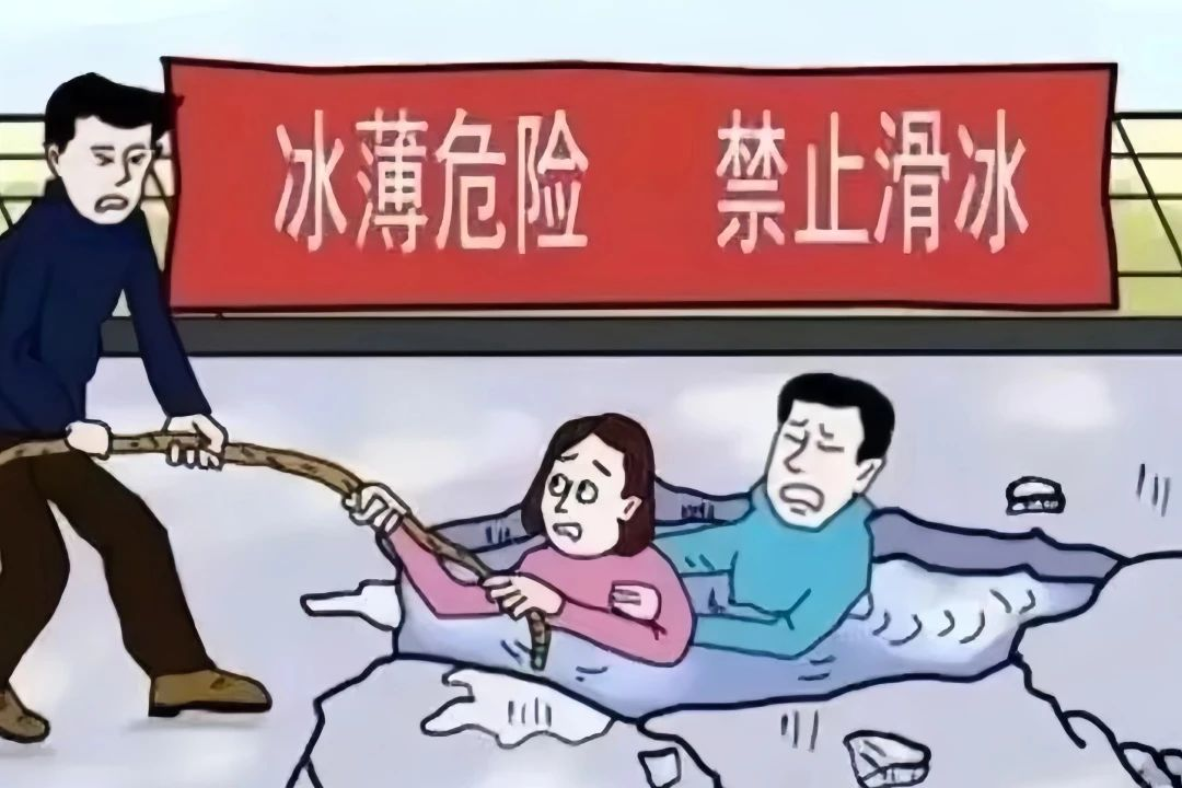 1.冰面光滑、易碎,冰水寒冷,一旦不小心落入冰窟窿中,施救难度很大。