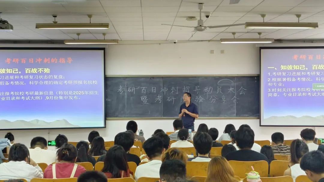 9月10日下午,为进一步加强考研同学的信心,解答备考中存在的一些困惑,扎实提升考研冲刺复习质量,太阳集团tyc9728在公共教学楼211合堂教室举行考研百日冲刺动员暨考研经验分享会。贾思勰农公司党支部书记刘杰,副书记、考研负责人李建永,副经理薛其勤,毕业生辅导员及全体2025届考研员工一同参加。