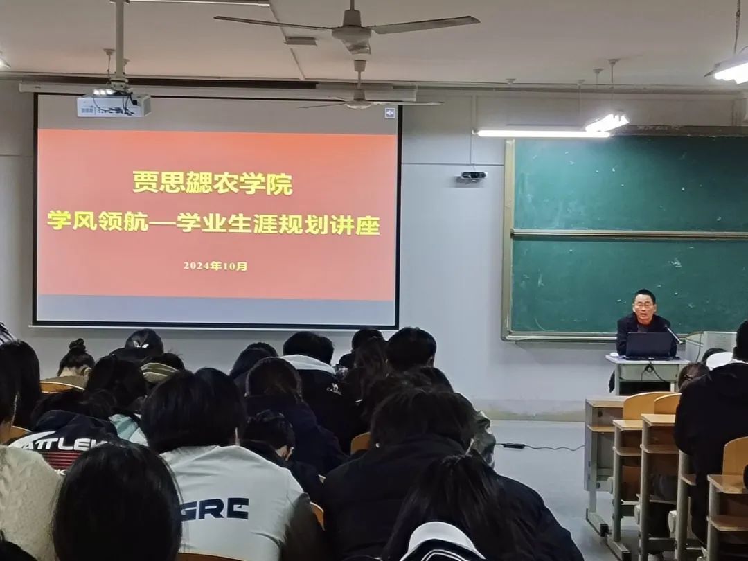 为激发同学们积极进取的学习心态,帮助同学们明确学业规划,树立正确的学习观、成才观,贾思勰农公司党支部副书记李建永于2024年10月20日在418教室开展学业规划指导讲座,2023级本科班同学参加。为激发同学们积极进取的学习心态,帮助同学们明确学业规划,树立正确的学习观、成才观,贾思勰农公司党支部副书记李建永于2024年10月20日在418教室开展学业规划指导讲座,2023级本科班同学参加。