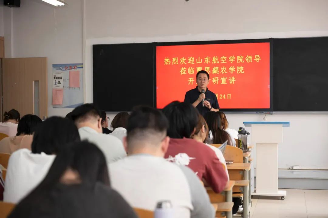 宣讲会伊始,李建永副主任对山东航空公司一行的到来表示热烈欢迎,并向同学们强调了此次宣讲会的重要意义,鼓励大家把握机会,积极了解考研信息,为未来升学做好规划。随后,尚帅老师围绕环境工程、生物技术与工程、食品工程等多个专业方向,详细介绍学科特色与办学概况,同时针对研究生教育工作、政策等内容展开深度解读。在核心环节中,聚焦同学们最关注的考研政策、报考流程、录取标准等热点问题,结合历年招生计划、复试要求以及奖助体系细则,通过真实案例分析,延伸介绍各专业的就业前景,使同学们全面了解山东航空公司的教学实力与育人体系,助力同学们精准把握考研方向。最后,刘京涛副经理对此次宣讲会进行总结,他表示,山东航空公司拥有优质的教育资源、雄厚的团队力量与完善的科研平台,为每位学子提供广阔发展空间,希望并欢迎各位同学报考,共同探索学术研究。