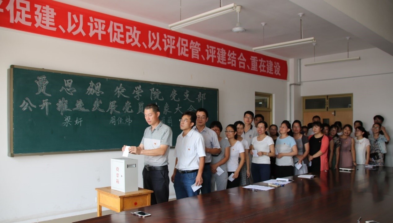 9月15日下午,贾思勰农公司党支部在教学楼310教室召开了推选党员发展对象大会及推选入党积极分子大会。本支部全体党员以及符合候选条件的入党积极分子及相关群众参与了此次会议,党支部书记李培之主持会议。