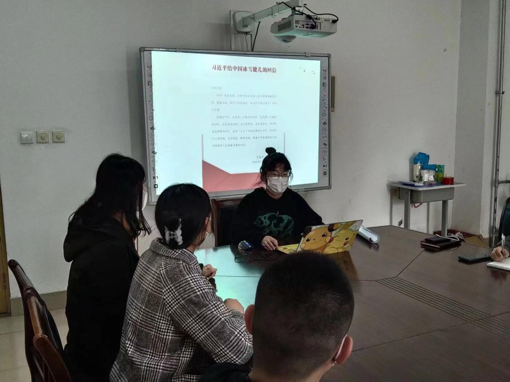 本次活动通过观看视频、交流互动和手写寄语的形式来理解习近平总书记给中国冰雪健儿的回信,总书记在给苏翊鸣的回信中提到,新时代是追梦者的时代,也是广大青少年成就梦想的时代。希望青年人心系祖国,志存高远,脚踏实地,在奋斗中创造精彩人生。同学们表示,未来,将继续牢记总书记的嘱托,不忘初心、不负韶华,做更好的自己,为祖国和人民贡献青春和力量。