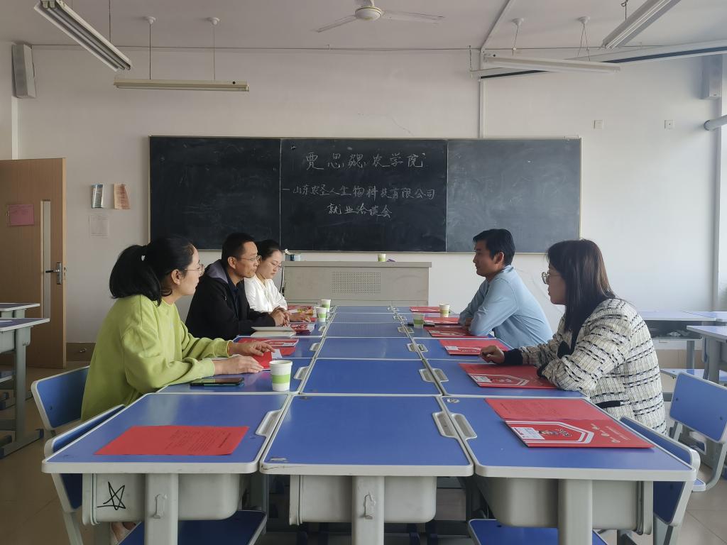 宣讲前,企业代表与党支部副书记李建永、员工科科长高凤、辅导员老师高淋淋进行就业洽谈,双方就人才需求、人才培养、人才供给、实习平台搭建等情况进行交流,加强供需对接,实现合作共赢,给毕业生提供高质量岗位和发展平台,山东农圣人生物科技有限公司、山东仕邦农化有限公司分别就岗位招聘需求,工作待遇,薪资,福利条件等方面向同学们做出详细介绍,并介绍了公司发展情况,发展方向,企业用工需求,岗位特点以及提前介入公司的人才培养过程,与同学们进行深入洽谈,并解答了同学们对于就业实习的一些问题。